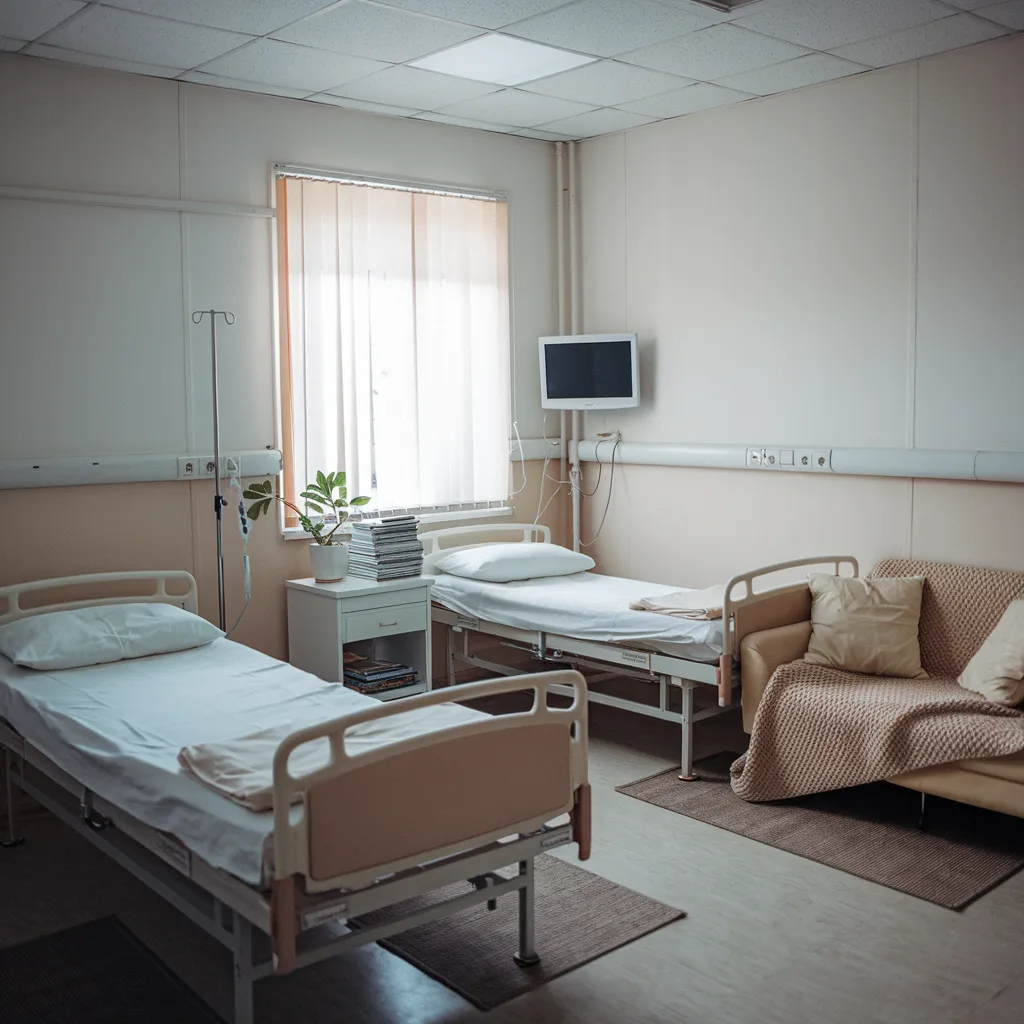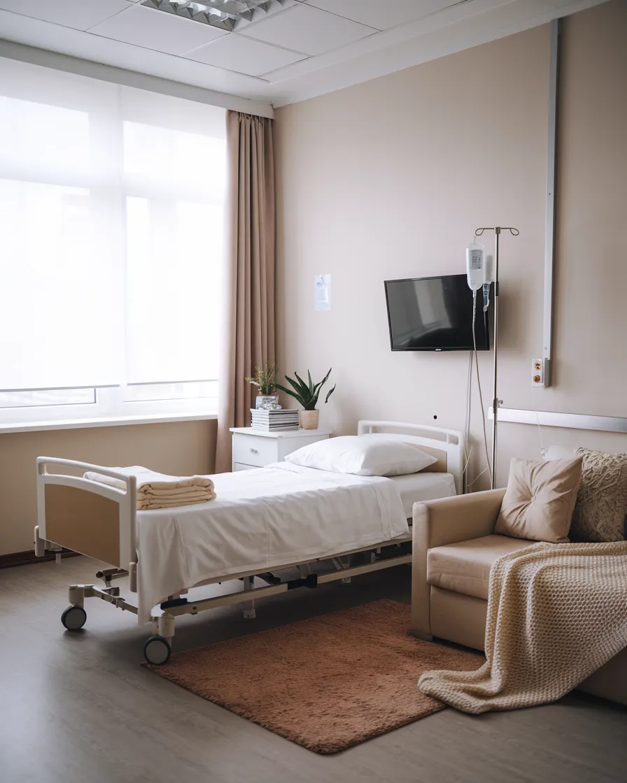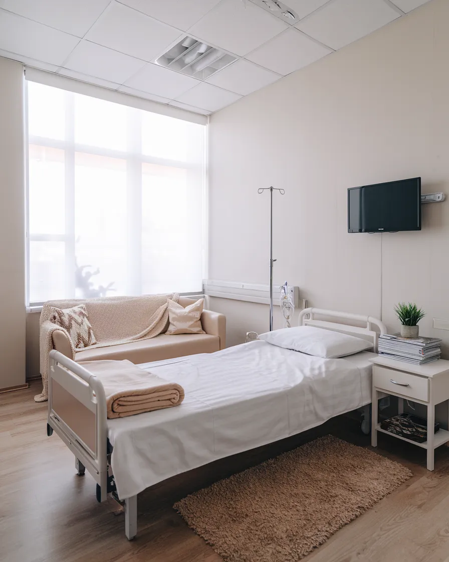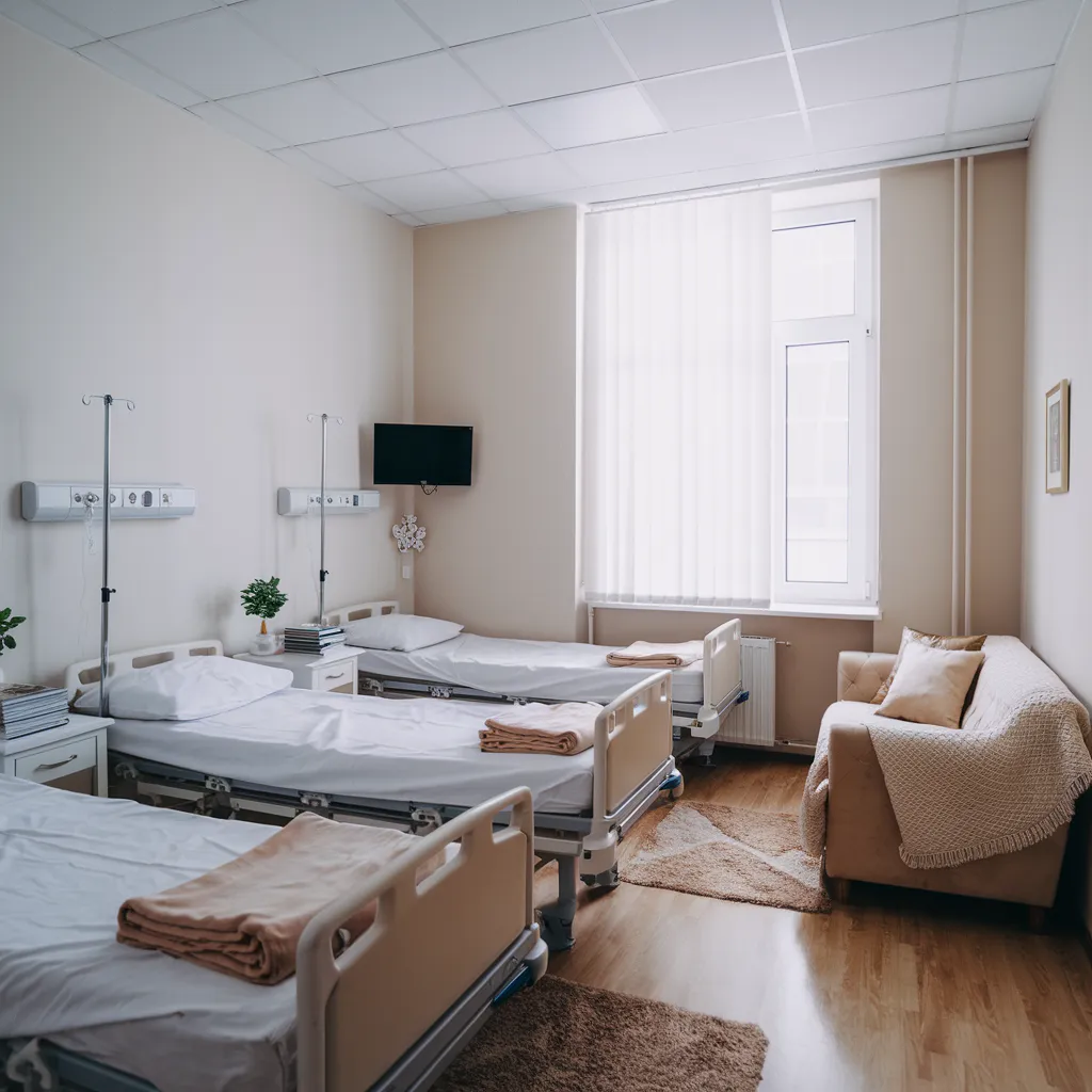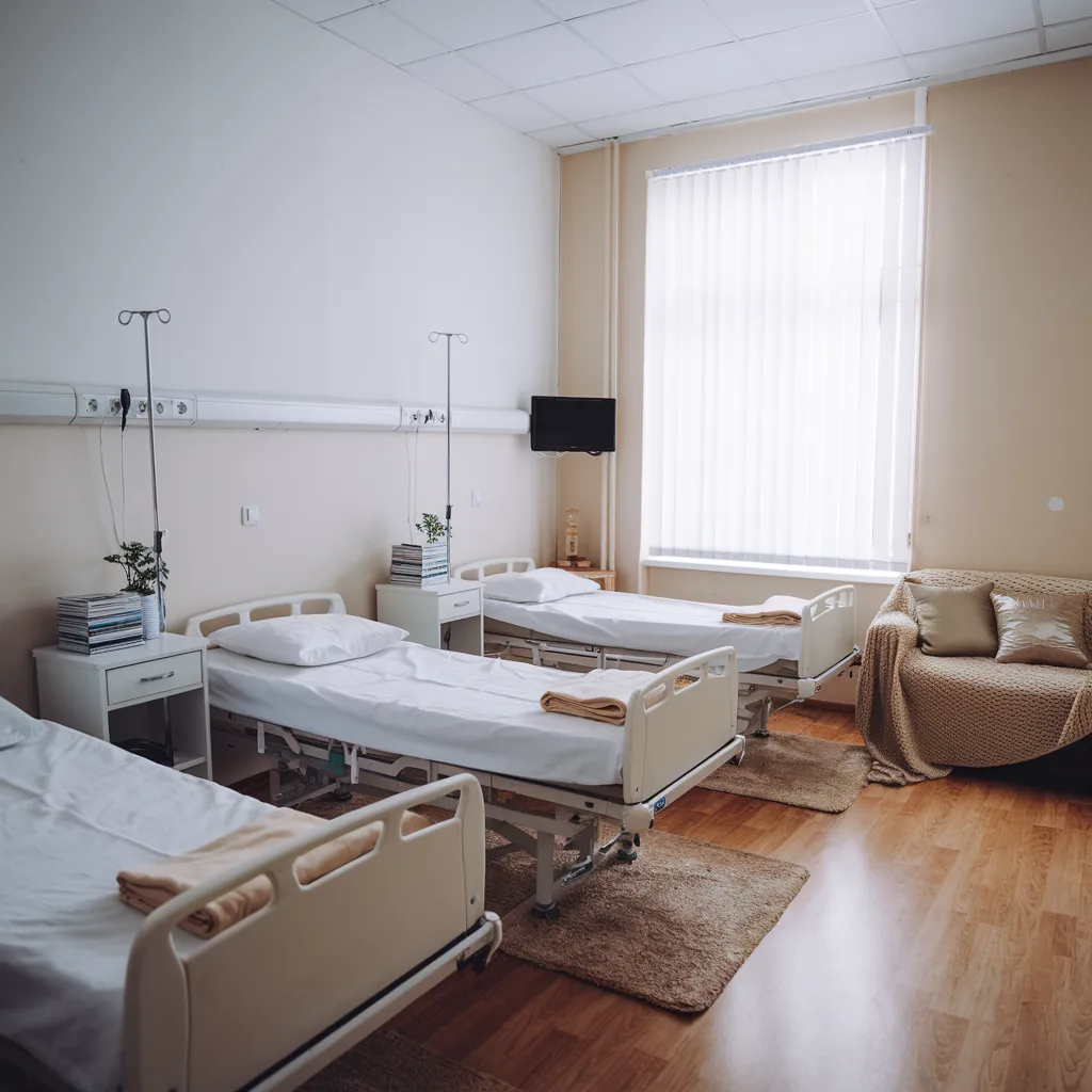 - Комфортное лечение. Возможен прием и терапия дома, в офисе или в стационаре. В больнице предусмотрены удобные палаты и полноценное трехразовое питание.